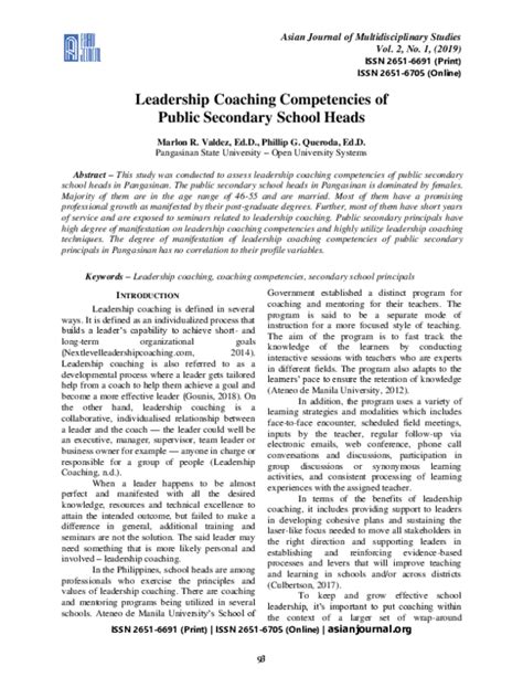School Leader Coaching Competencies: A Research Synthesis Pdf